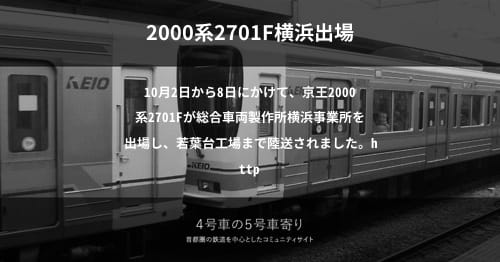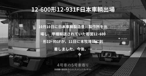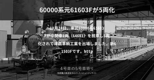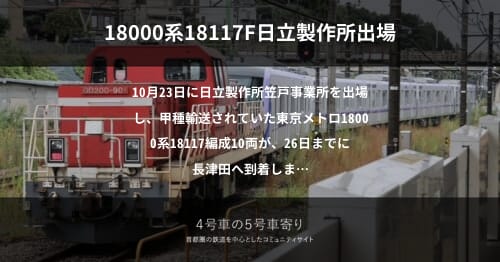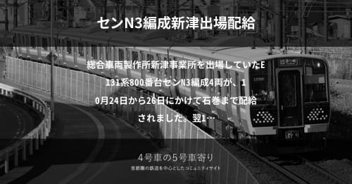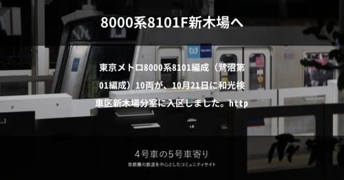 「4号車の5号車寄り」へようこそ。コミュニティへ寄せられた情報を元に、鉄道車両・施設動向をまとめています。ぜひ投稿をご検討くださいませ。